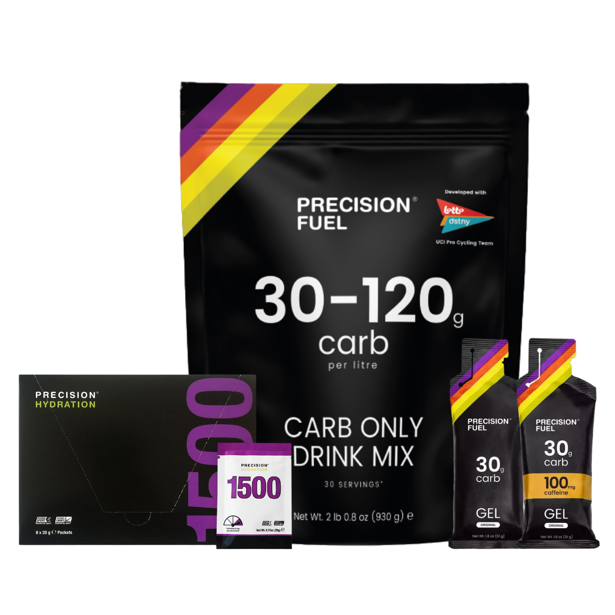 - 通常、短時間のトレーニングでは単独で使用し、長時間のトレーニングでは他のPrecision Fuel製品や実際の食品と組み合わせて使用します。